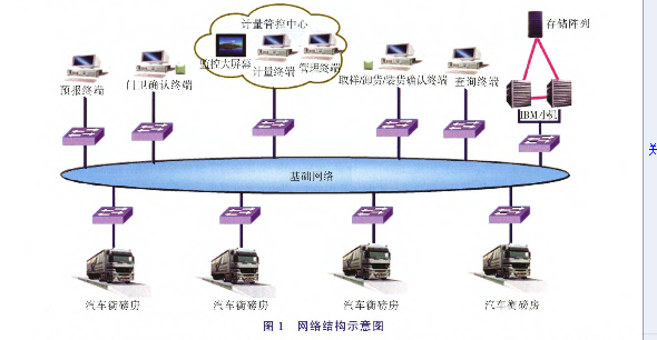 過程感知地磅集中計量系統結合了網絡、計算機、通信自動化等技術,系統的網絡結構如圖1所示。