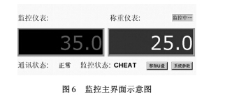 通訊狀態: 當前監控終端與稱重儀表通訊狀態,當通訊中斷時狀態顯示“異常”;監控狀態: 當監控終端與稱重儀表的差值在設定范圍內時顯示“正常”,否則顯示為“CHEAT”。