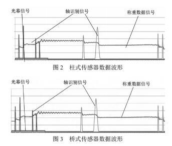 在同一臺秤上同時安裝柱式傳感器與橋式傳感器,將它們的信號同時引入儀表,采集車輛通過秤臺時的信號波形。結(jié)果采集到的兩種傳感器的輸出波形驚人的一致,如圖2、圖3所示。為什么會出現(xiàn)這樣的情況呢?因為秤體固有頻率只有幾赫茲,而橋式傳感器固有頻率在上千赫茲,已完全滿足衡器數(shù)據(jù)采集需要,柱式傳感器更高的固有頻率發(fā)揮不出優(yōu)勢。